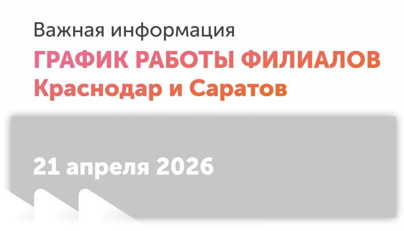 Обратите внимание на режим работы филиалов в Краснодаре и Саратове в связи с Радоницей 21 апреля (вторник)